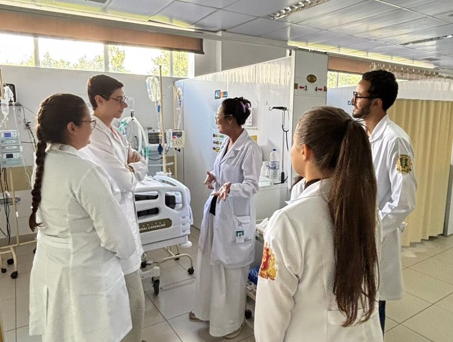 Os alunos participaram de aulas teóricas e acompanharam o atendimento realizado diariamente em diversos setores do HAC, como a ala cirúrgica, ambulatórios,laboratórios de análises clínicas, unidade de terapia intensiva e Instituto de Prevenção.
